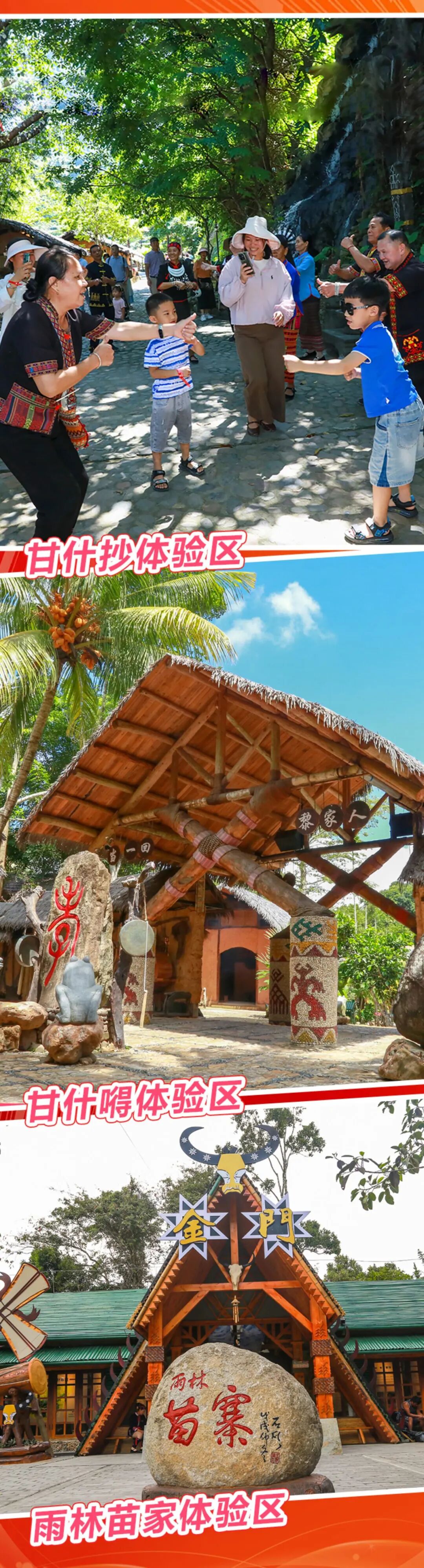 福利一:三大文化体验区:畅游甘什抄体验区、甘什体验区、雨林苗家体验区